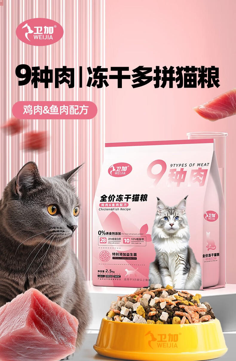 卫加全价猫粮5斤装 成猫幼猫主粮全阶段通用型天然粮2.5kg