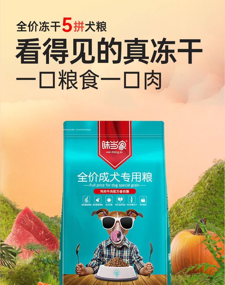 商品名称:味当家狗粮2kg成犬泰迪金毛比熊博美哈士奇萨摩通用型成犬4斤奶糕 成犬5拼冻干狗粮【4斤】螺旋藻配